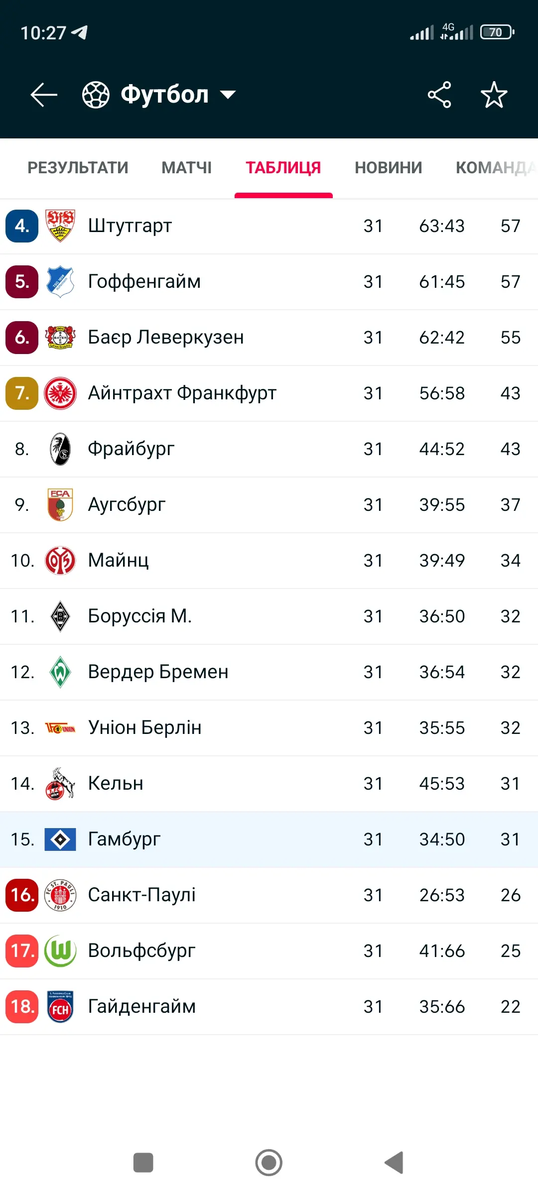 Ганденгайму вже точно нічого не світить і Вольфсбургу скоріше за все теж, а от Санкт-Паулі, як на мене, має ще шанси.