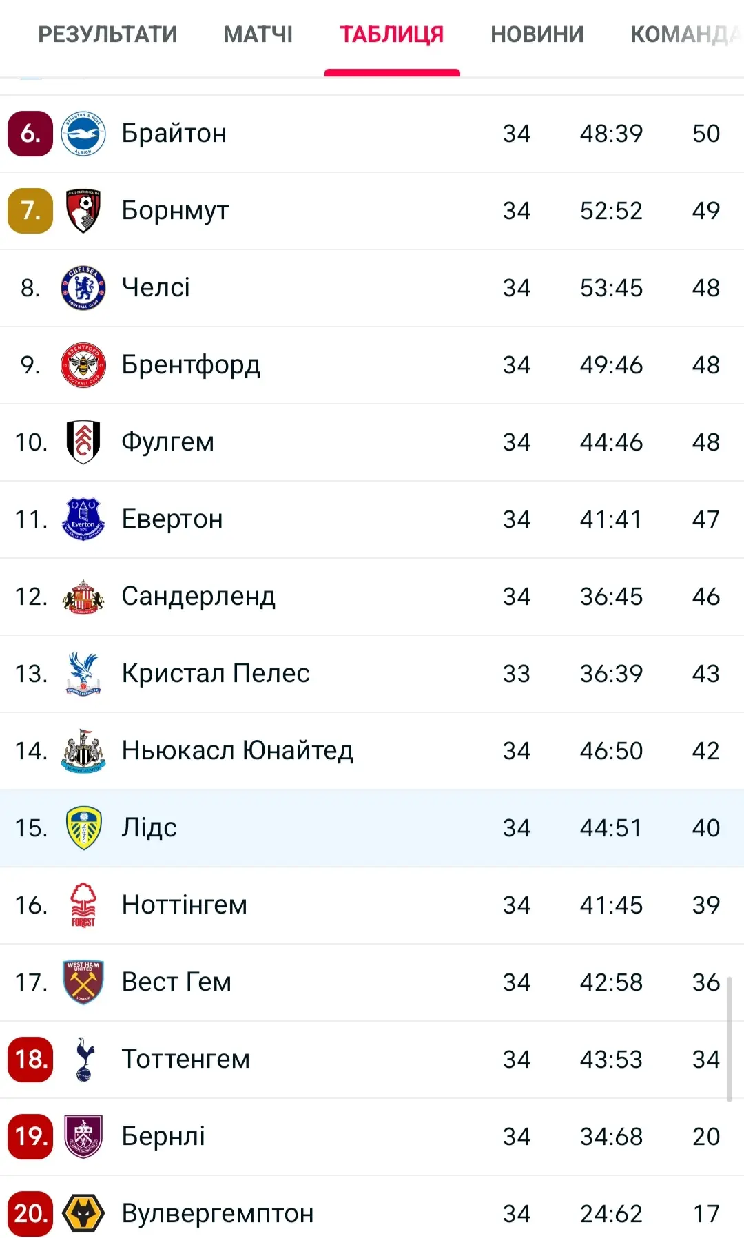 Так, перше, що кидається в очі це заруба команд із Лондону, але фактично Лідс та Нотінгем теж в зоні ризику і це додає інтриги🔥