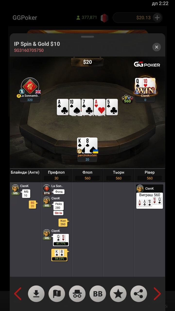 *проти іншого я б рейзив ще префлопом, але з подібними персонажами граю кол в позі і далі вже від дошки постфлоп.