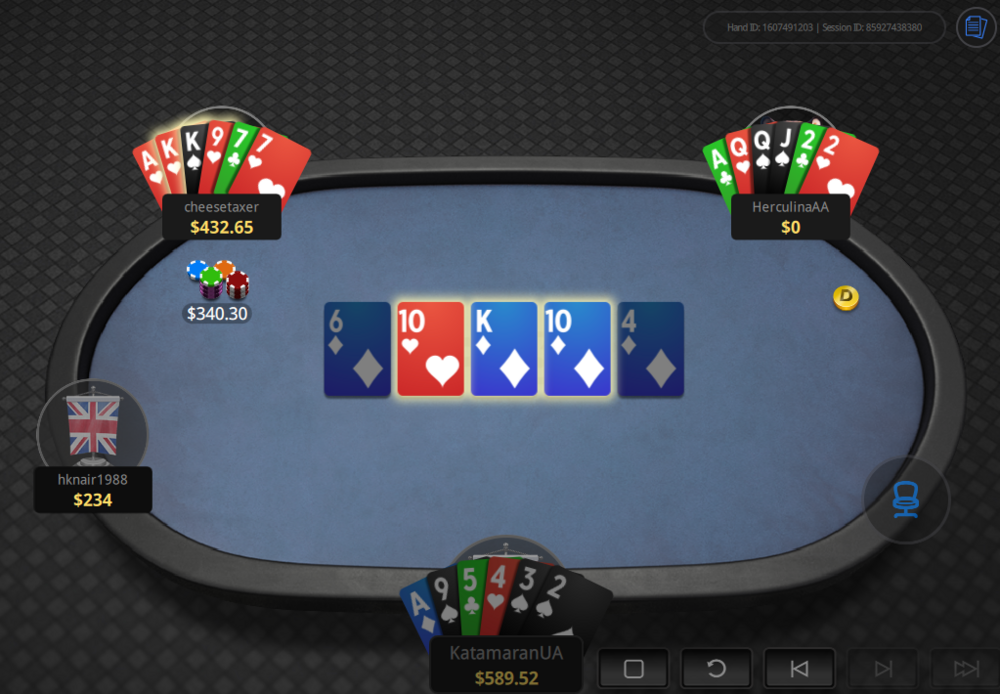 не дуже в курсі, шо там зараз в ваших холдемах відбувається, але якшо на твій ререйз рівером летить пуш особливо на такій чи подібній дошці, то ти 95% в сраці без першого натсу (мова за 888. в гг, де грав, давав би 85-90%).