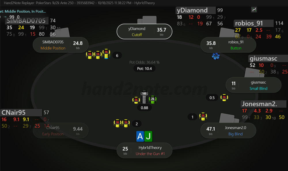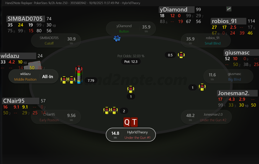 Сюди його! Ідеально спрацювало!🤑 Після цієї роздачі відчував набагато більше впевненості в грі)