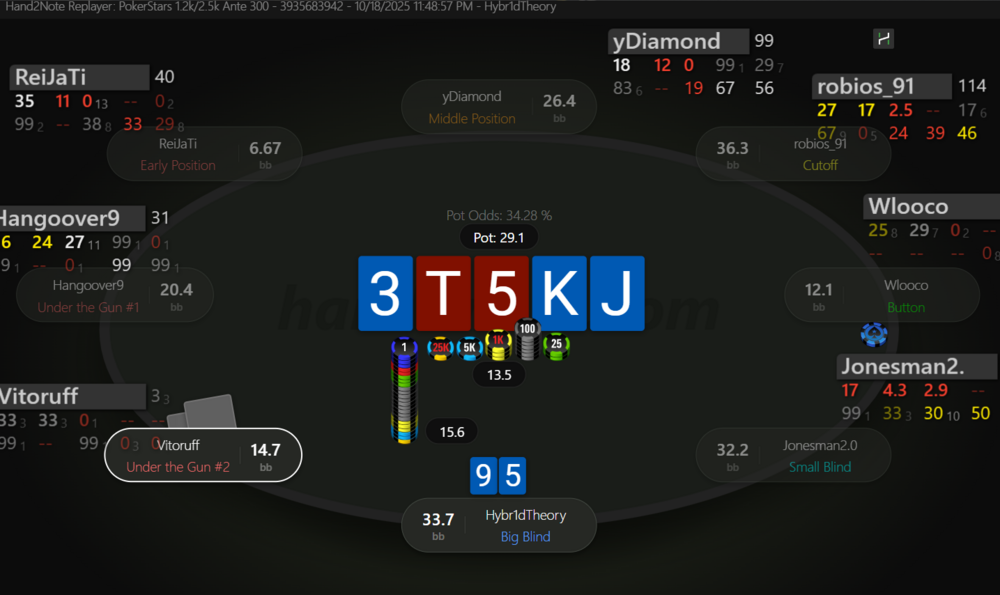 Отже ми рейз і отриуємо пуш коротуна з HJ на 8 бб.