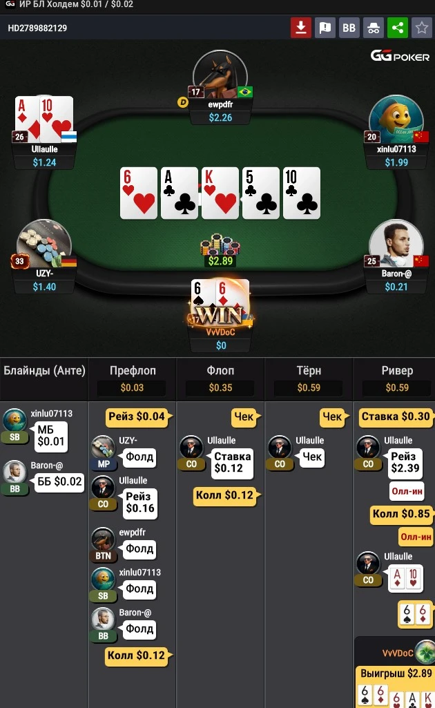 Напевно найбільше запам’яталась ця роздача мені, зіграв на мою думку правильно, та і противник думаю також, тут просто кулер.🤑