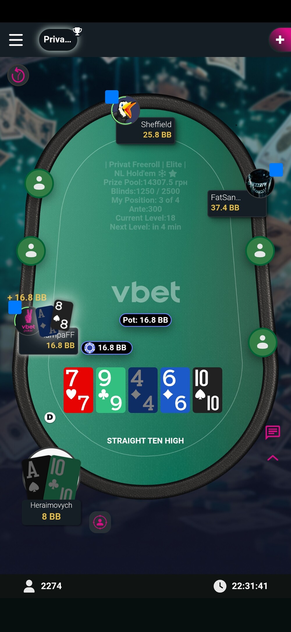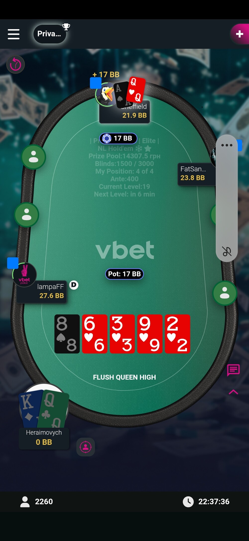 Тепер до хомки) Гра до фіналки була спокійною, не завжди, але дуже гарно збільшував свій стек і на фіналку вийшов чіп лідером. Але на жаль не вдалось його втримати бо все що здавали ігнорувалось суперниками і мій стек танув на очах. Головна перша роздача в ІТМ де втратив частину стеку проти Лампи: