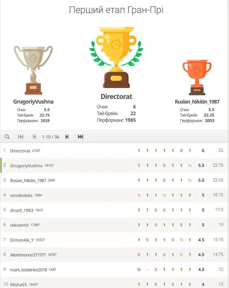В цьому місяці в мене не складається з покером , вирішив трохи зіграти в шахи.Турнір Гран-Прі.Швейцарка по 10 хвилин на Лічес.7 турів.