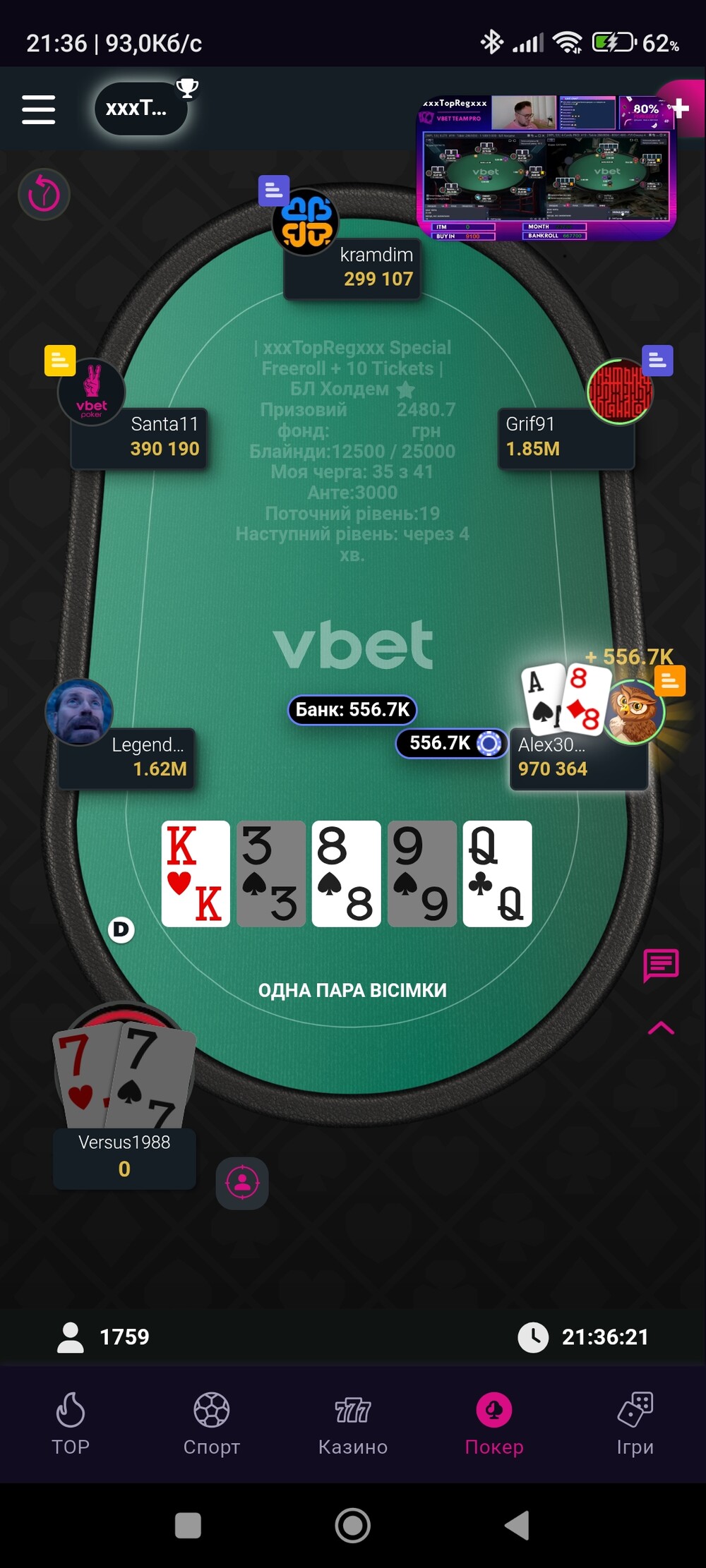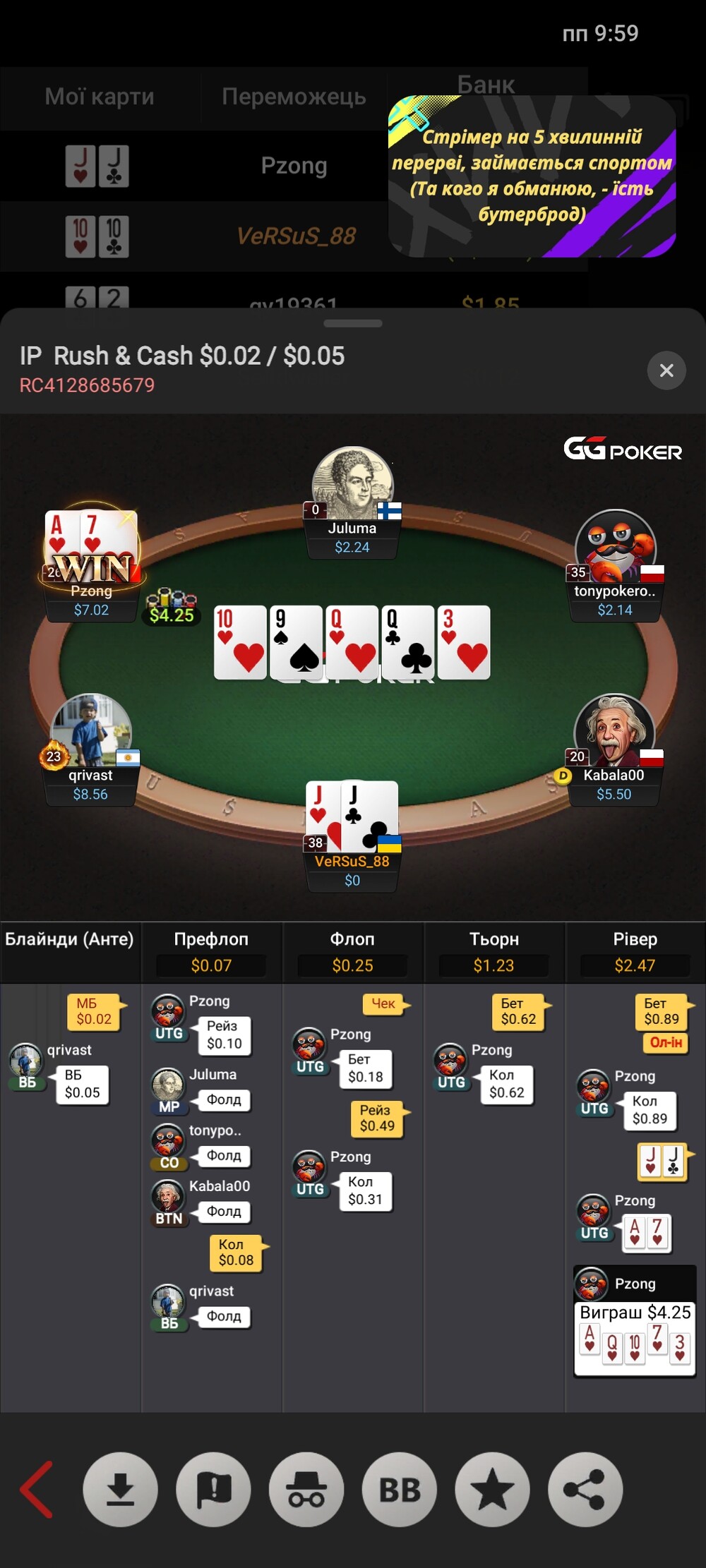 Усім гарних стартових рук, чудових ріверів та до зустрічі за столами.