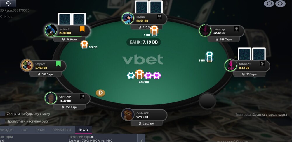 Вчора зіграв один турнір в покер на Вбет за 270 гривень.