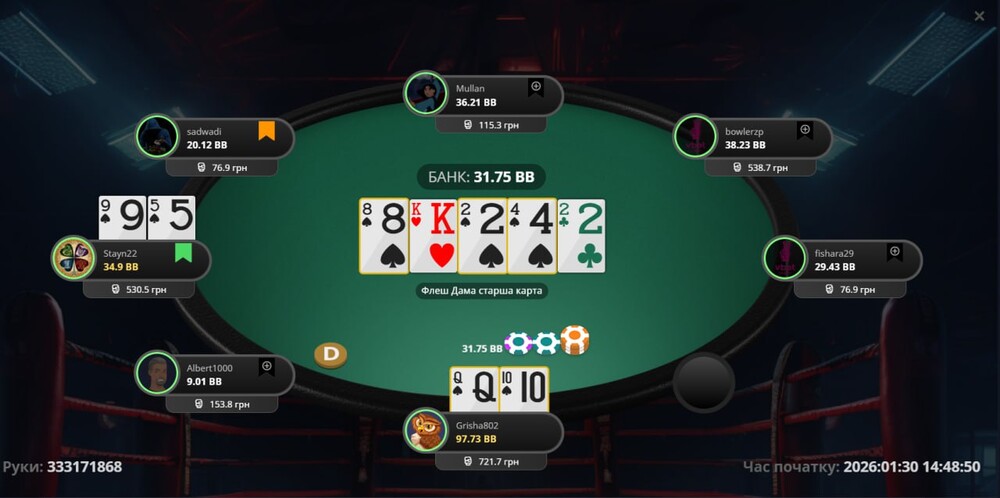 Дякую за думку і відгук.Вцілому думка що в багатьох випадках зокрема в цьому турнірі Я не добирав фішок ,обділяючи себе потенційними грошима.Намагатимусь враховувати.