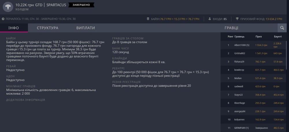 Приймаю.В таких турнірах нормально тільки два місця 1 і 2.вони однакові з однієї відмінністю різниця в нокауті,яка склала приблизно 1500 грн.