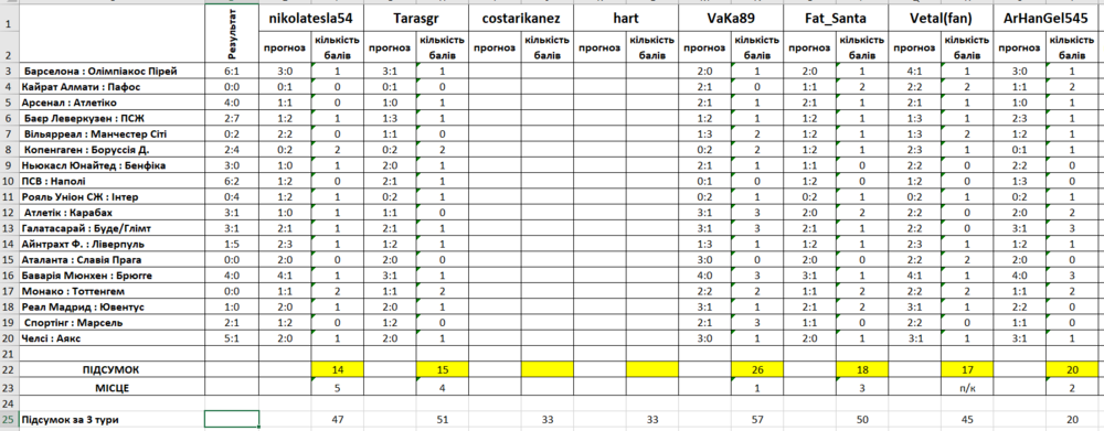 Таблиця конкурсу прогнозистів 3 туру ЛЧ