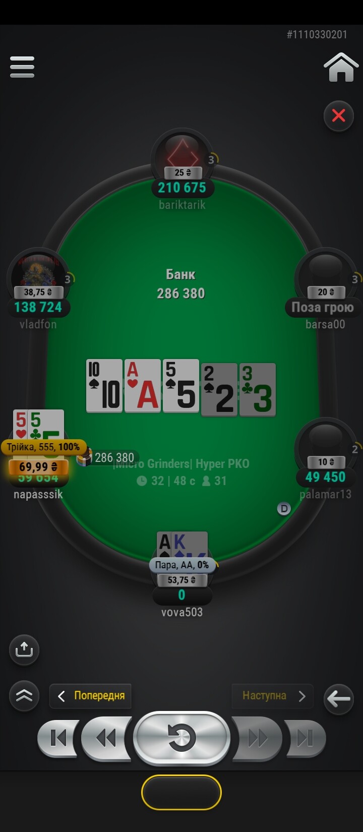 Скільки блайндів стек був перед роздачою? Ти одразу пушив олином в ББ?