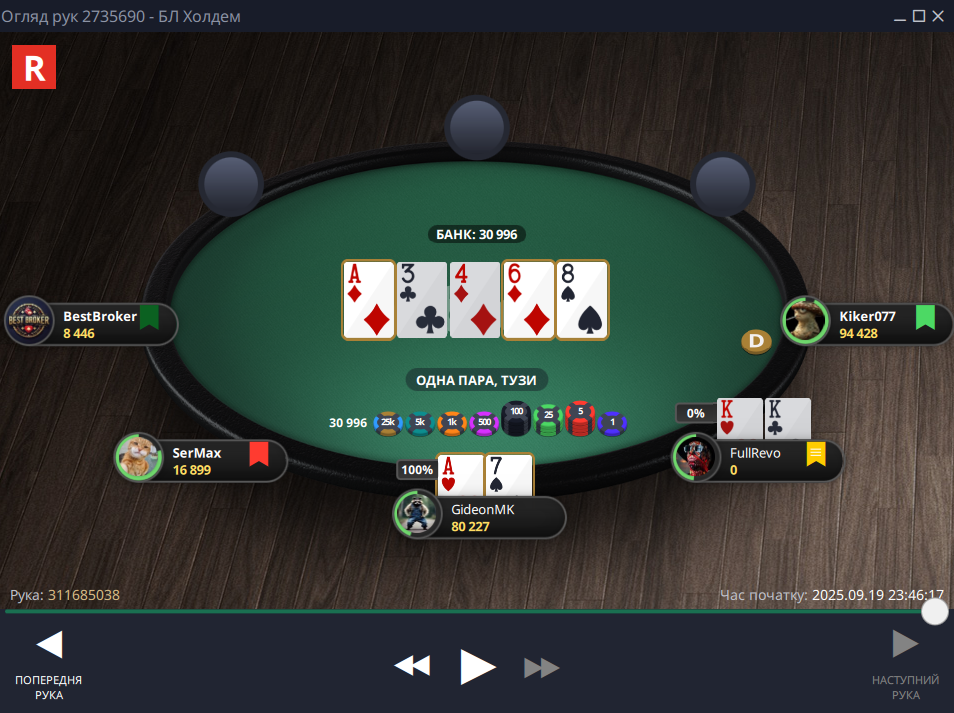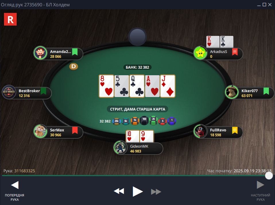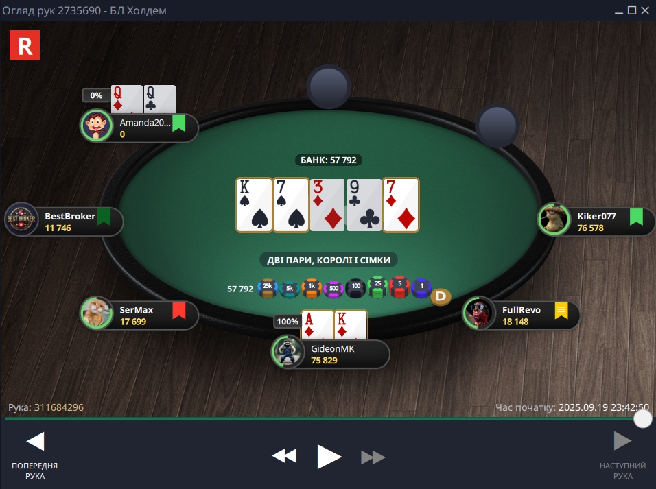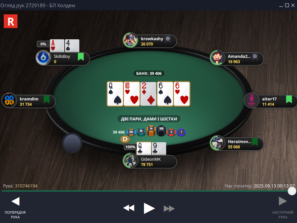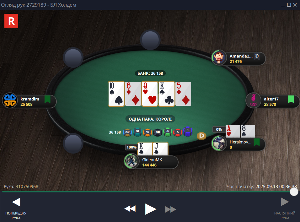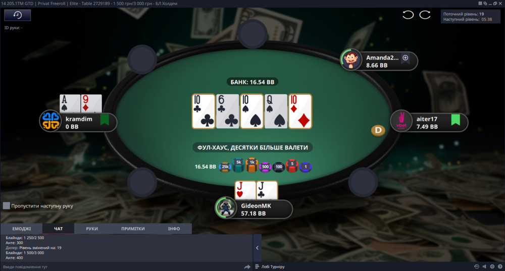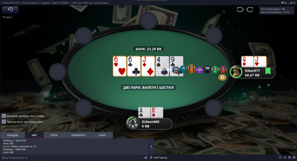 Ну а далі просто давив стеком, так як усі мали приблизно одинаковий стек(крім мене 😁) і ніхто не хотів вилітати ) у цій роздачі заколив пуш Дениса і переїхав (вибач друже)