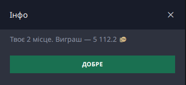 Дякую, буду старатись, хочеться виграти той лідерборд, манить та рамка 😁