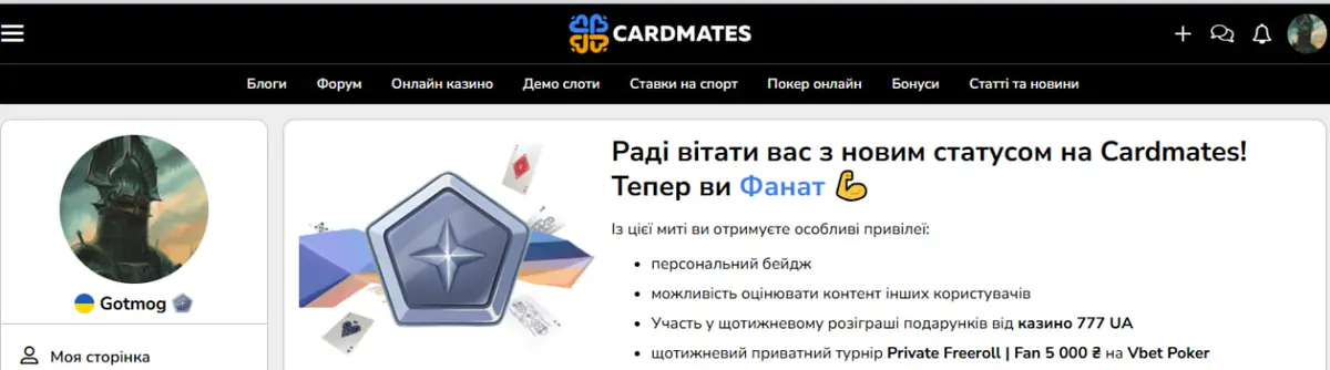 Отримав статус Фанат!