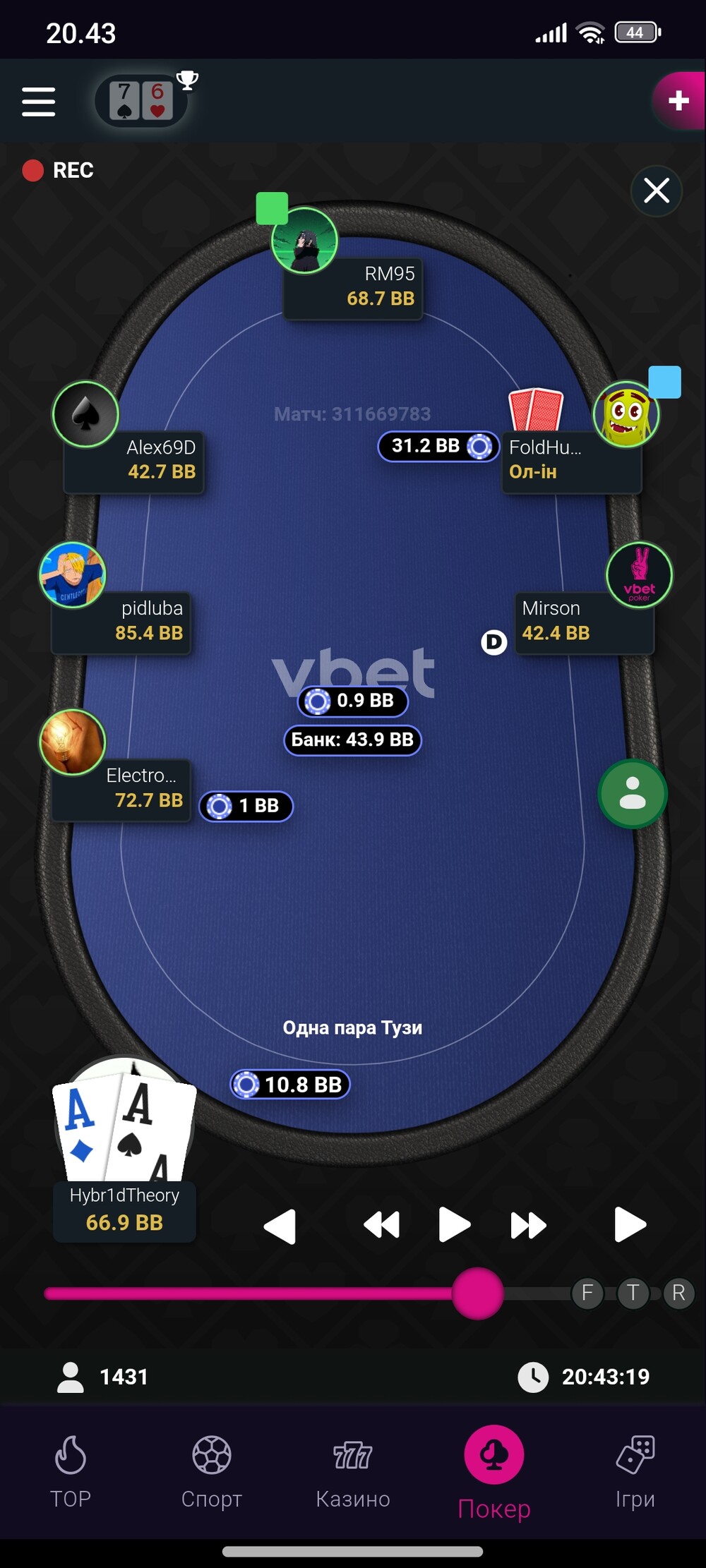 З 1010 якщо до нас 2 оліни на такому флопі це напевно завжди пас.