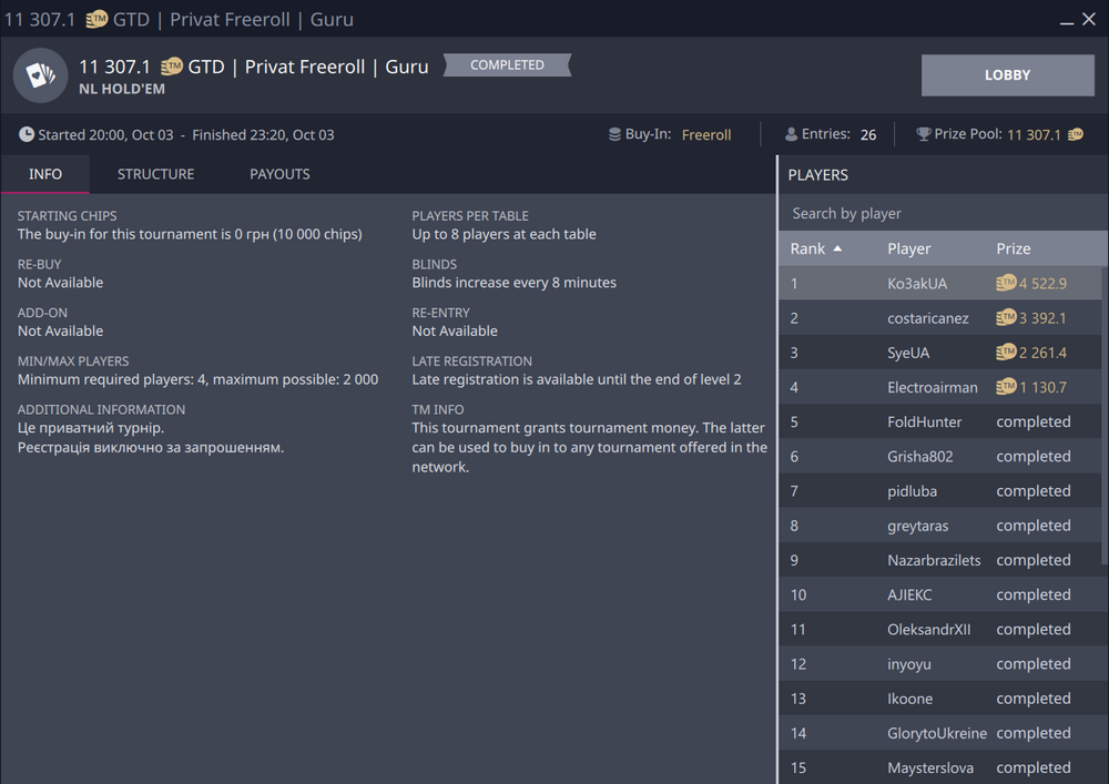 Закономірно переміг.Мабуть Ти всих випроводив з фінального столу по черзі.8 Макс довго розігрували.