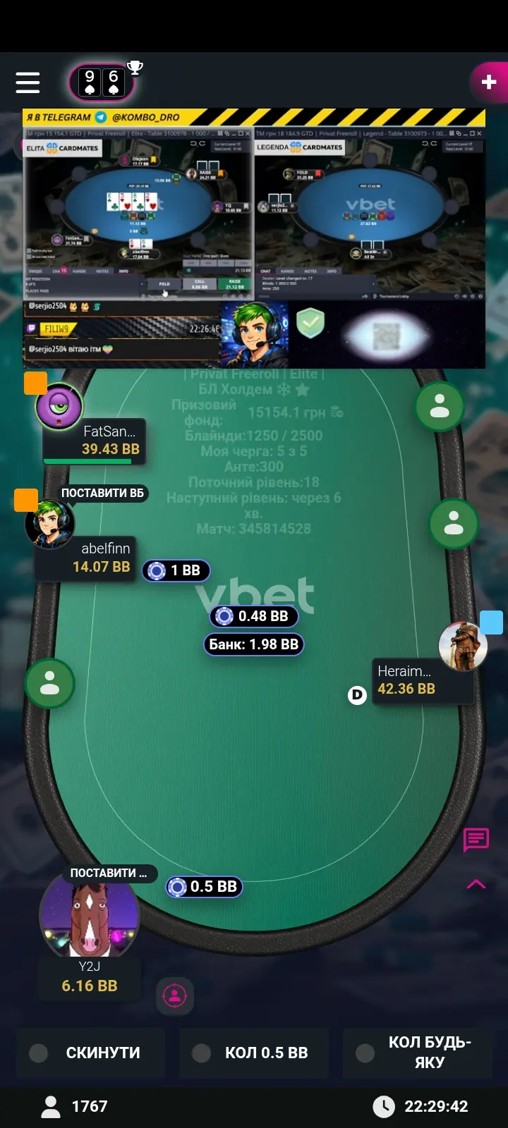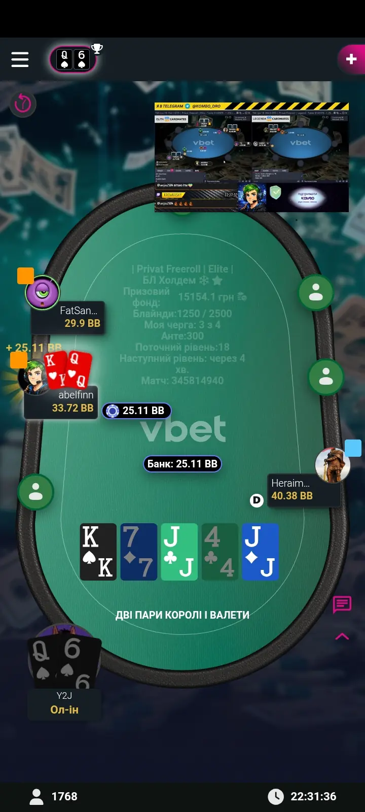 Доречі, зверніть увагу на синхронних королів на обох столах. Паралельно грав ще містері фрірол.