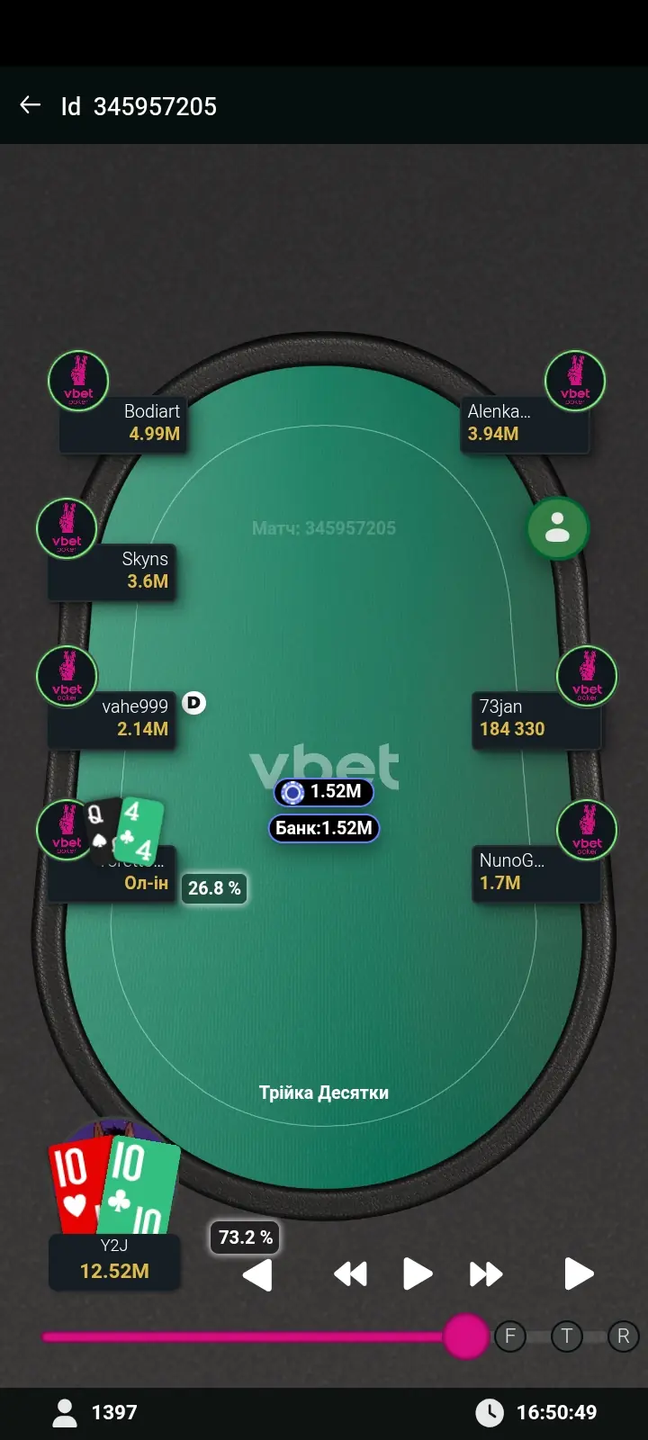 Зараз вже точно не згадаю, але в грі залишалося щось біля 50 гравців.