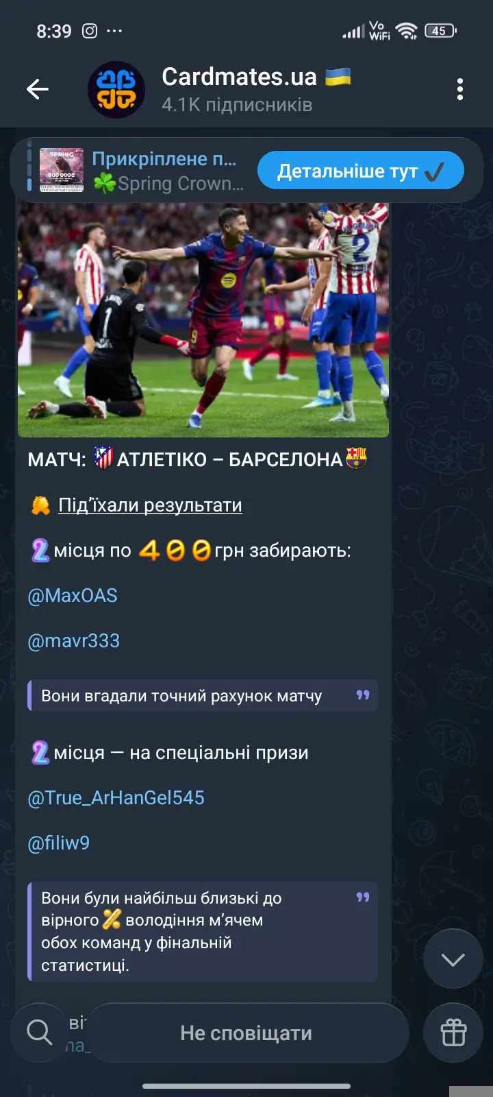 На завершення, поділюсь отриманим подарунком за майже вгаданий відсоток володінь в матчі Атлетіко - Барселона.