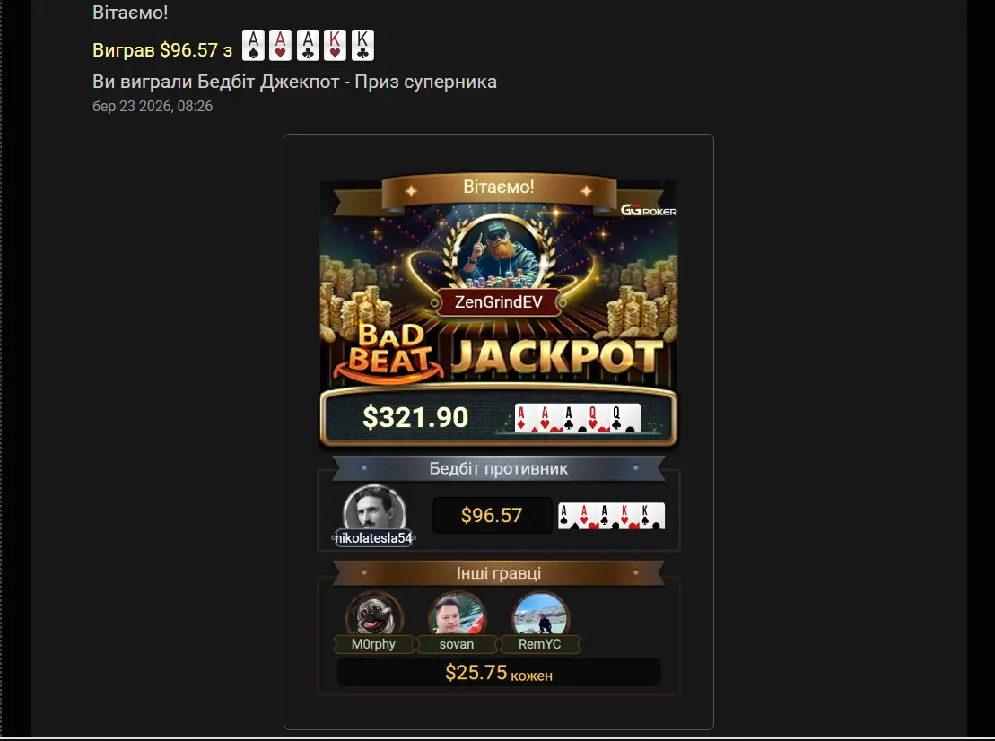 Не встиг я вчора оголосити про те що повністю переходжу на гру в кеш на GGPoker, як сьогодні зранку мені вже вручили сюрприз. Буквально через 15 хвилин гри мені випав Джек Пот.