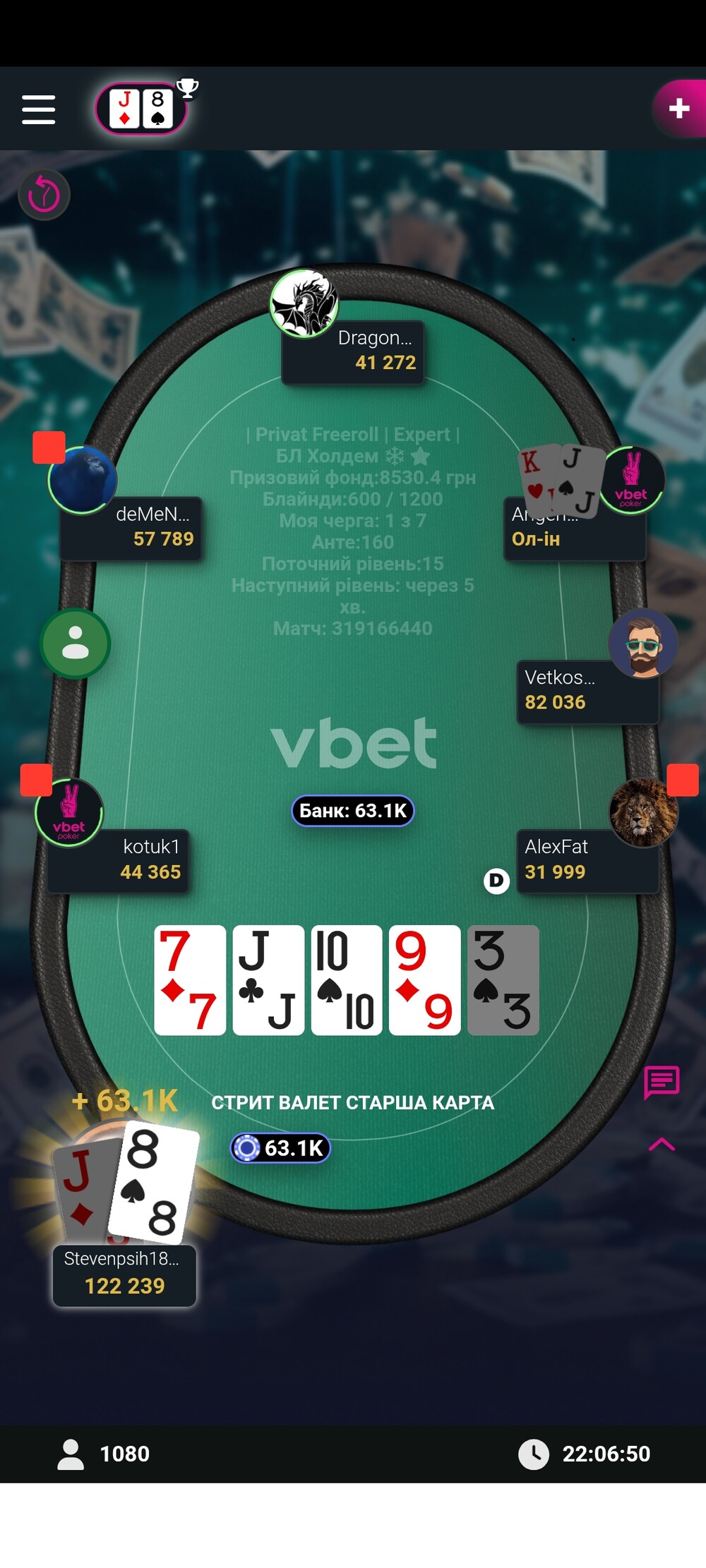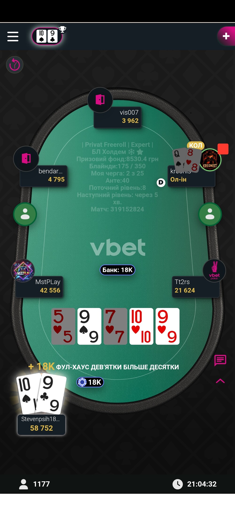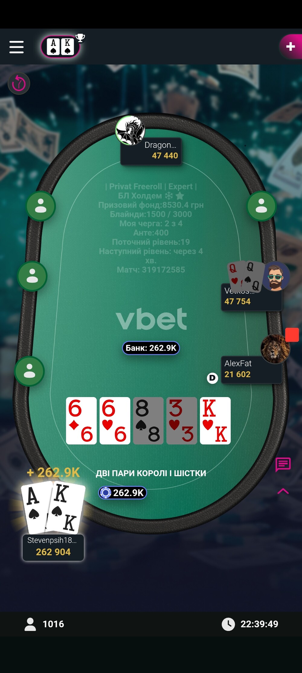 Зазвичай я відлітав ще за першим столом від більш досвідчених гравців,а іноді тому що банально не було часу на покер, але цього разу зорі зійшлись і фарт був на моєму боці протягом всього турніру, перло так перло :)😁
