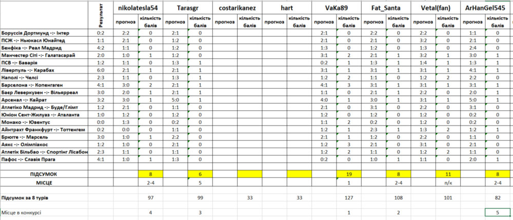 У 8 турі знову найкращий результат показав лідер загального заліку VaKa89 - 19 балів. Решта конкурсантів залишилась далеко позаду.