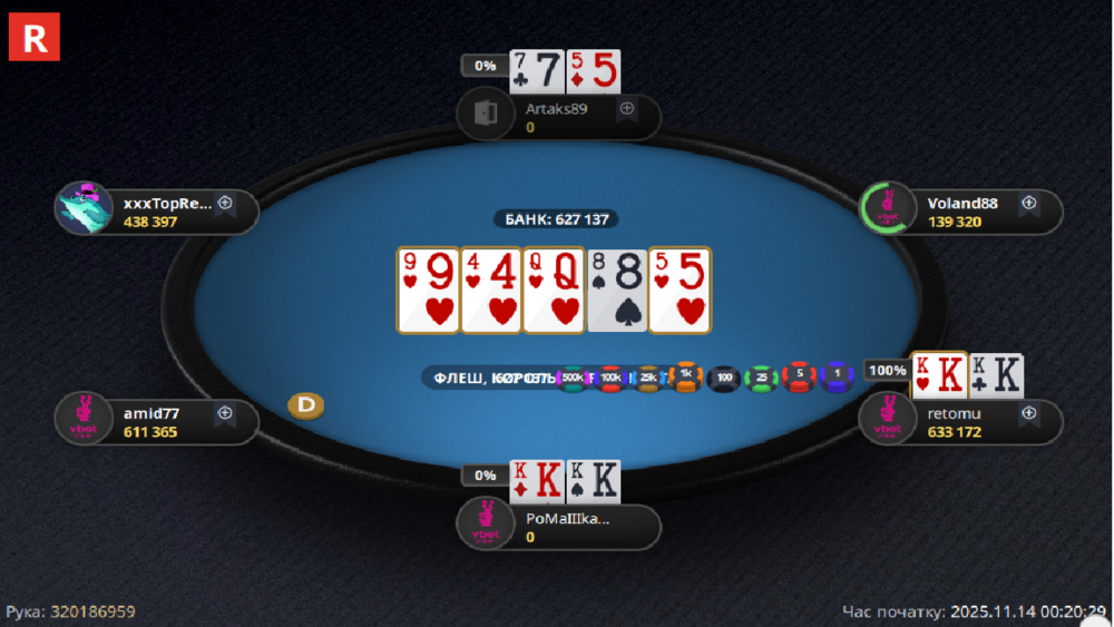 Фінальний стіл Холдему тривав 5 хвилин, адже все вирішила одна роздача. ⚡