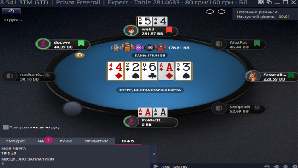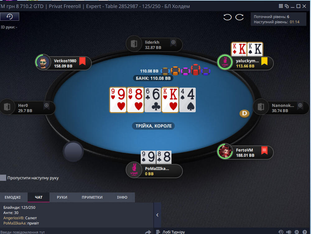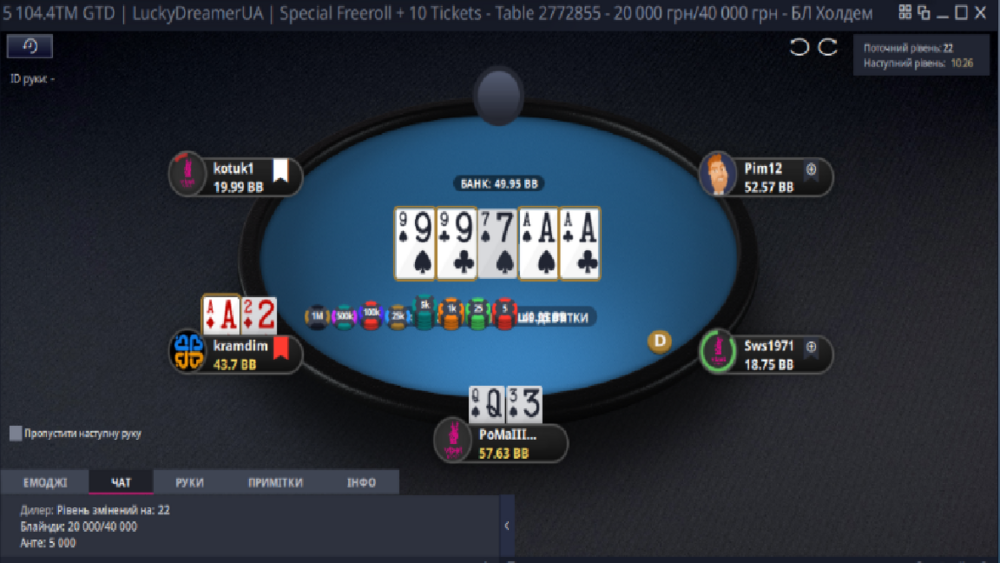 Він впевнено йшов чіпаком, звичайно, його карта перла кожну другу руку, але мені вдалось переїхати його з AQ в AK. 💪
