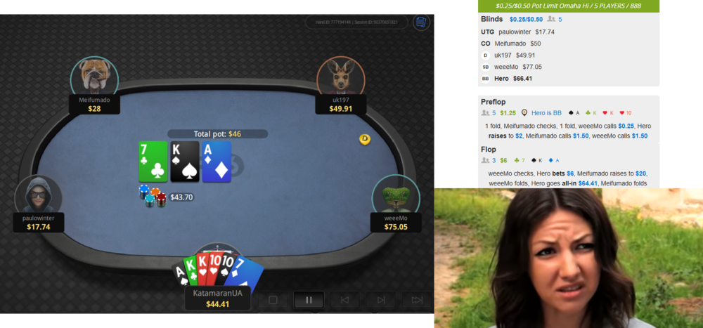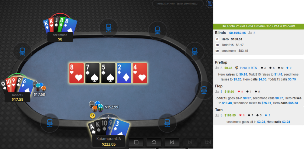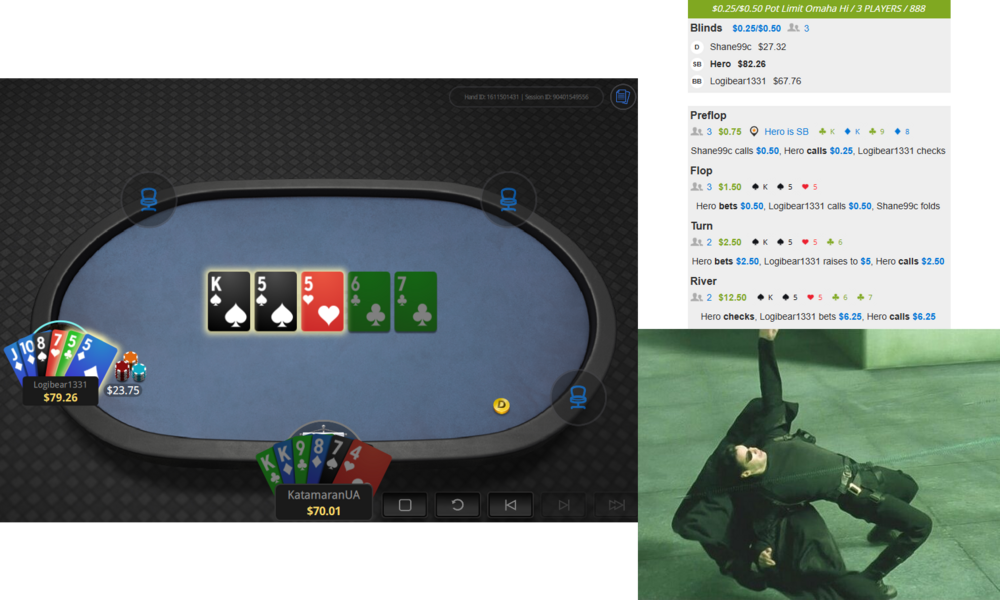 виділю шось не дуже тривіальне з тої невеликої кількості роздач, які зіграв.