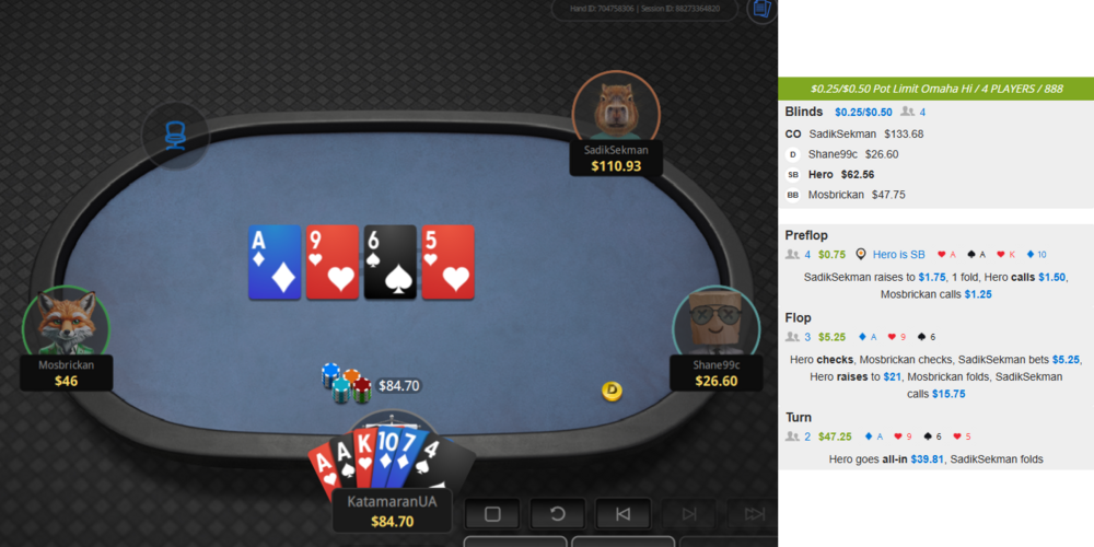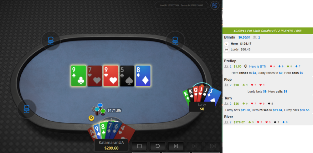 замайорів якийсь старий знайомий помічений зеленим, а тому можна і підсісти. втім відсів зі столу доволі швидко, бо хлопець знявся після цієї роздачі.