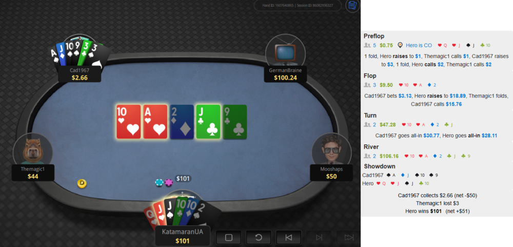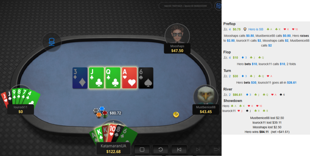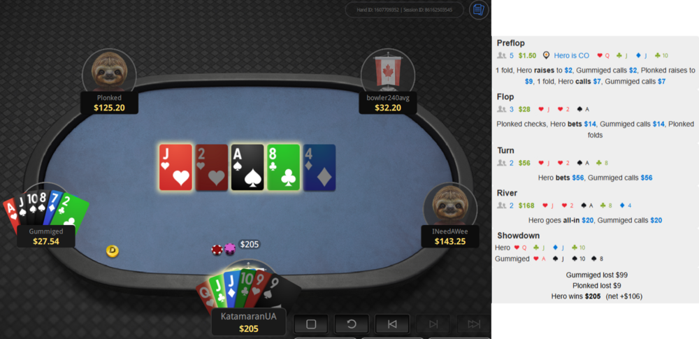 тобто зіграв наче і не супер погано, але у опа була одна з найгірших рук для нас. банк роздувся, ми замазані... таке. пощастило можна сказати.