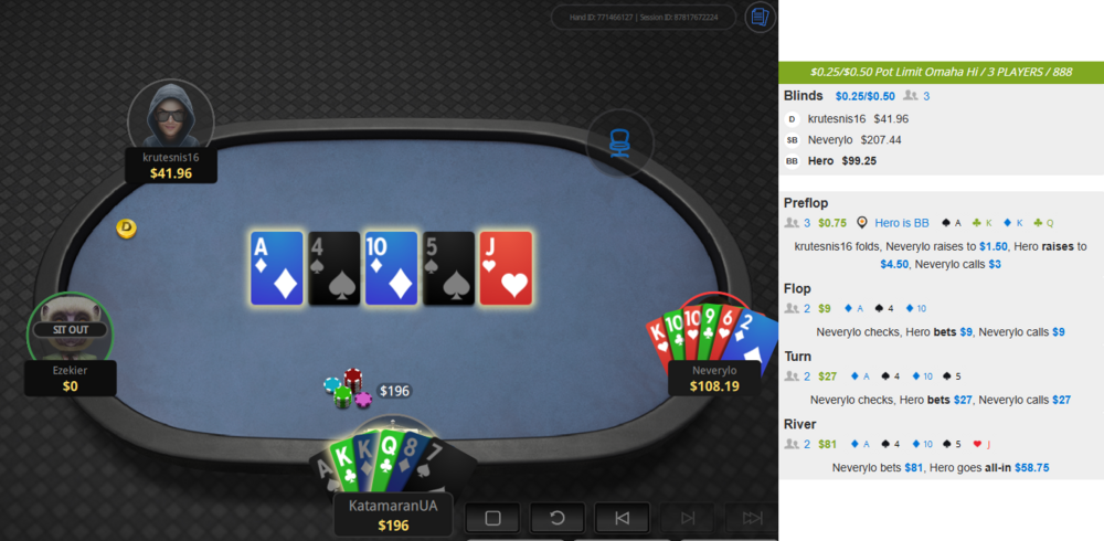 тож я то якраз вирішив грати просто колом флоп з найдією на нейтральний тьорн, і вже там рейзити в позі, бо бетпот флопа дуже запах тим, у шо воно і вилилося - зарубою у глибоких стеках.