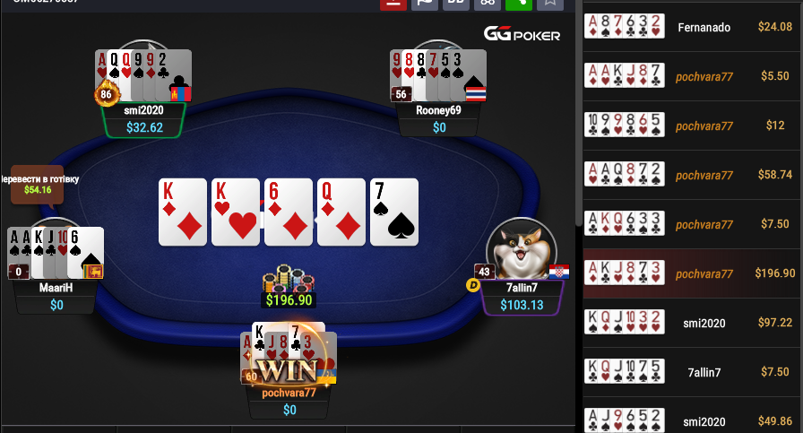 через пару роздач він усе, шо виграв мені віддав назад, але тут наловив свій один аут =)