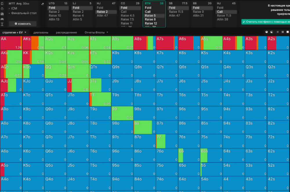 Цікаво що ГТО не завжди рекомендує 3бетити цю руку (в таких стадії наші фішки досить багато коштують)