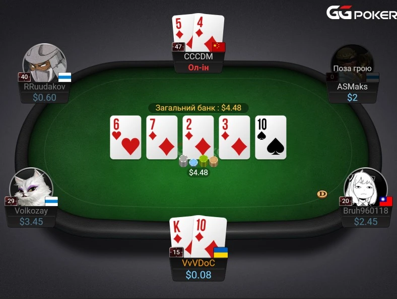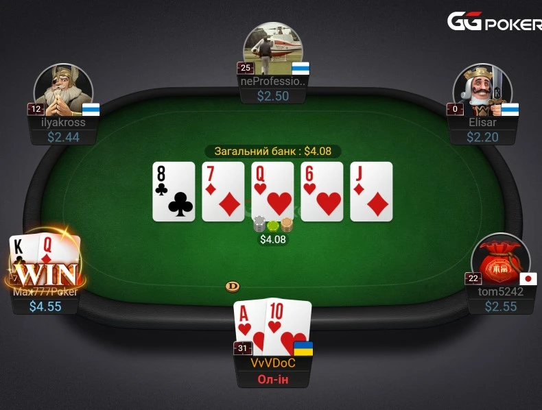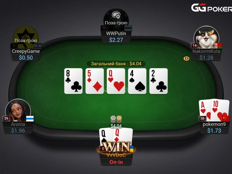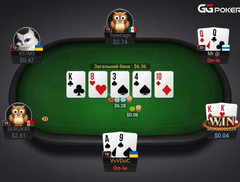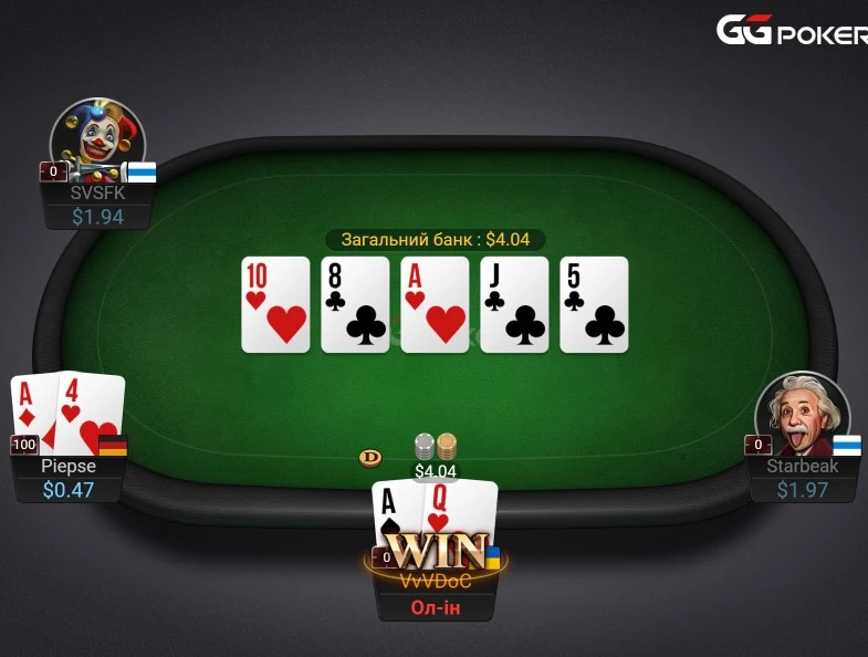 Стіл тільки стартував. Я відкрився, він заколив, і моє здивування було, коли він миттєво поставив All-In. Я подумав, що це може бути блеф або середня пара. У мене була топ пара з непоганим кікером вирішив колити 😉