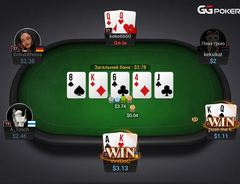 Перейдемо безпосередньо до роздач. Я потрапив у топ пару. З цими опонентами вже відіграв певну кількість рук, тому на їхню ставку я зробив 3бет, після чого отримав All-in. Думаю, зіграв правильно 😅