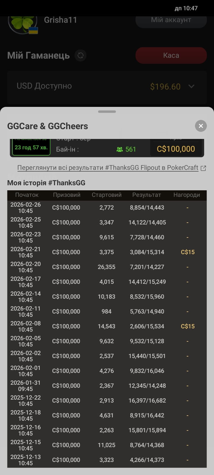 Да все вірно.Вчора був насичений день гри в турнірах.Програв кругом , лише в цьому вдалось щось виграти.Пишіть про марафон і не забувайте.Бо в мене свій марафон і своя дистанція на GGpoker.