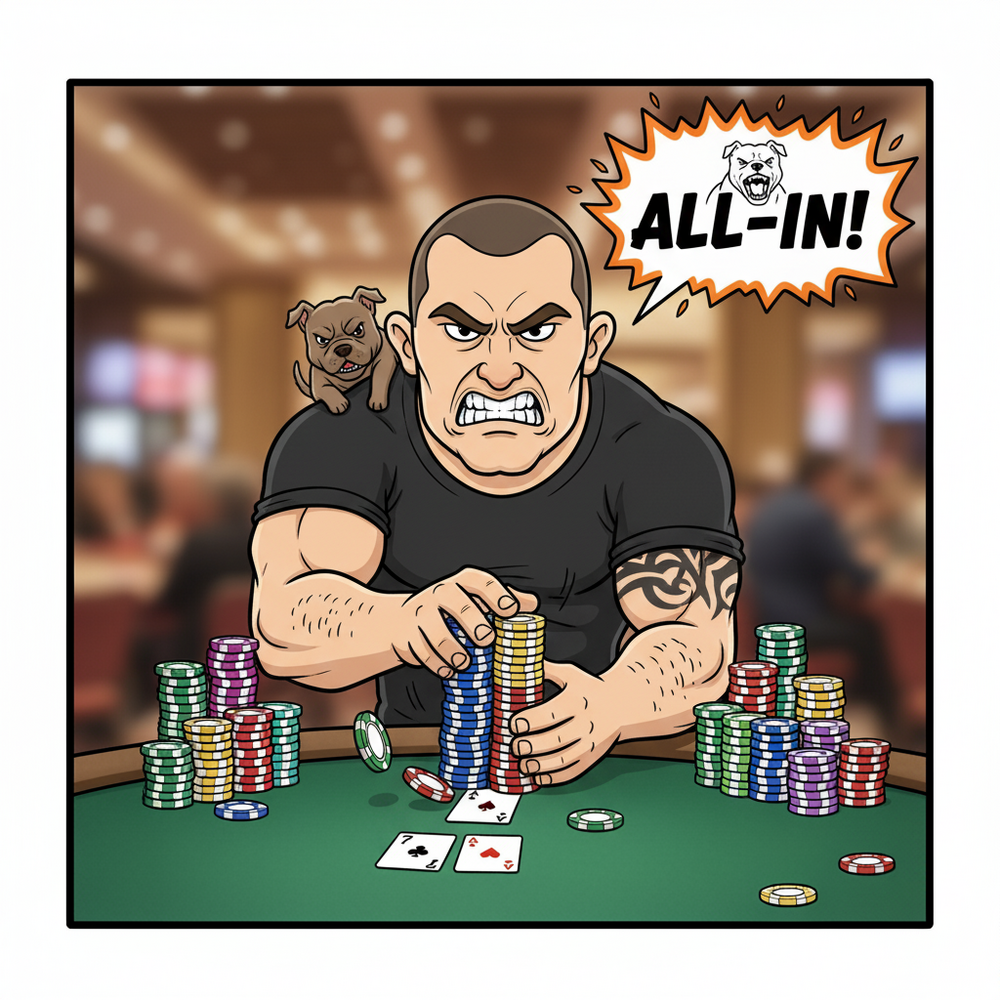 А бухгалтер пітбуля - це лузово-пасивний, на префлопі граєш "на широку ногу" і заходиш на всьому, але постфлоп в стилі "не попав в борд - чек-пас")
