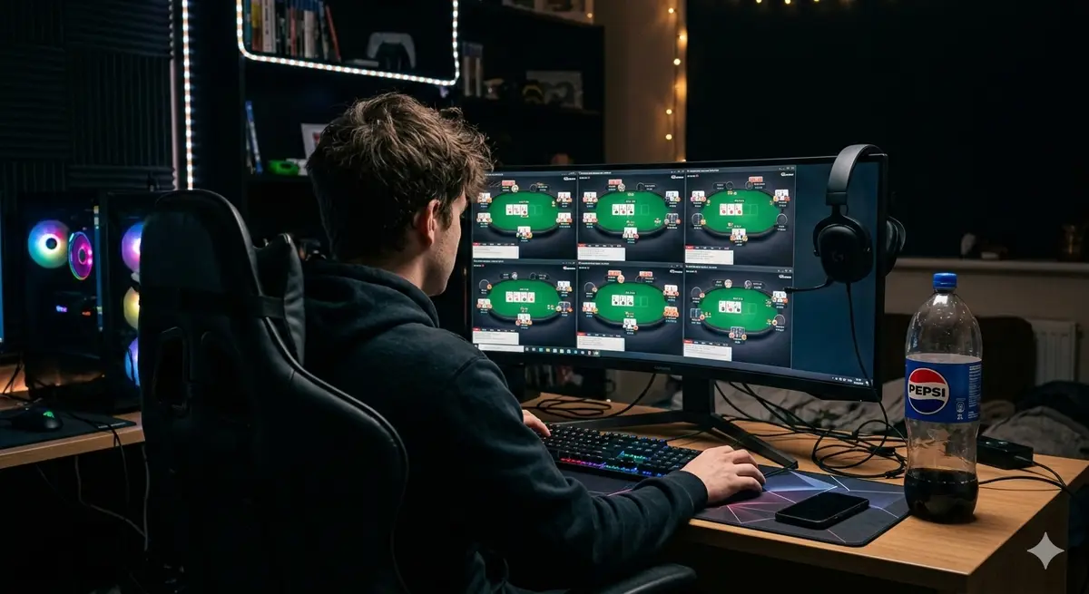 В темній кімнаті, в зручному кріслі, перед монітором сидів молодий чоловік. Його увага була зосереджена на покерних столах.