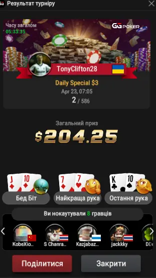 Скрінів не робив бо вже був налаштований засинати, але турнір все не відпускав мене - я вигравав монетки одну за одною.