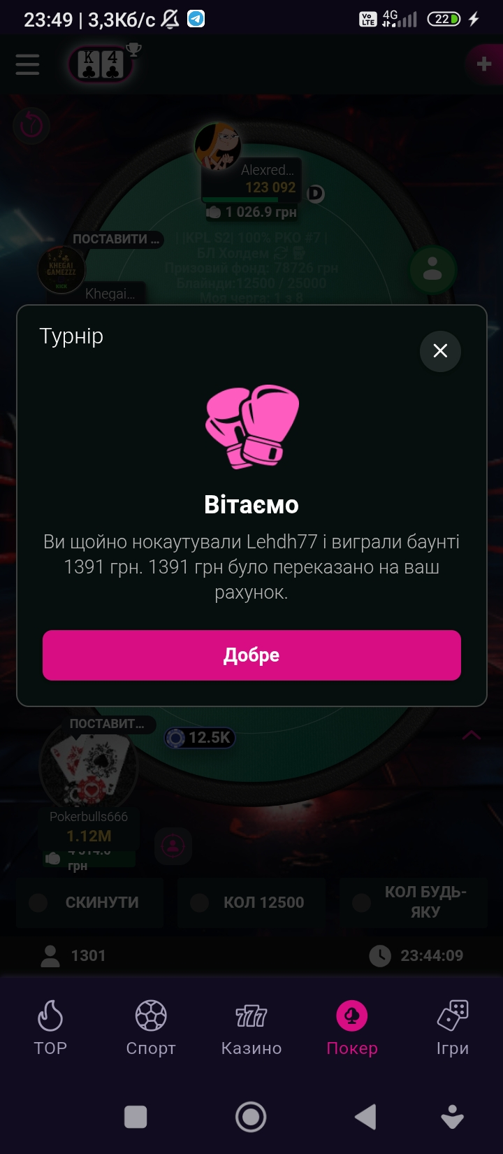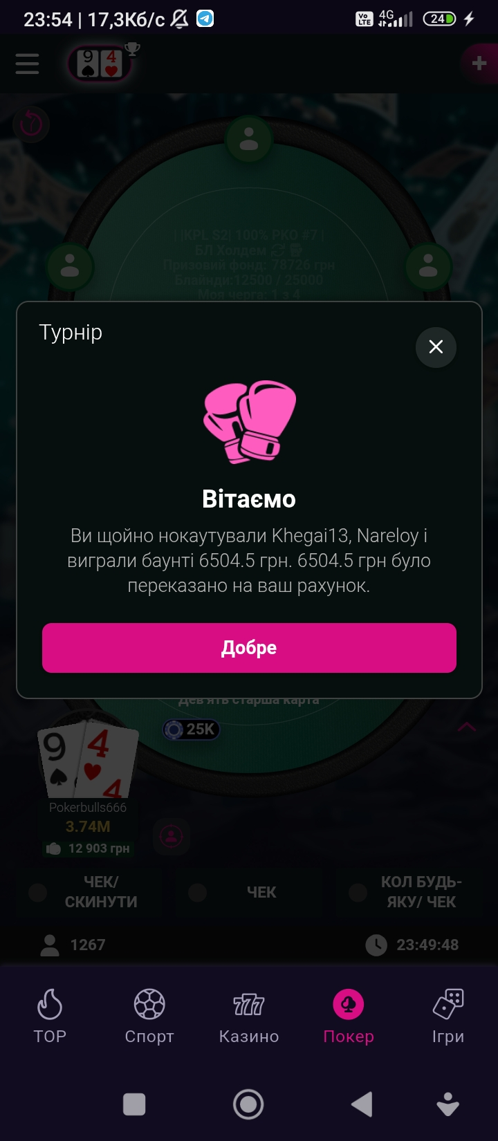 Дякую після насиченого трудового дня,я зміг знайти сили перейти міне поле покеру😊
