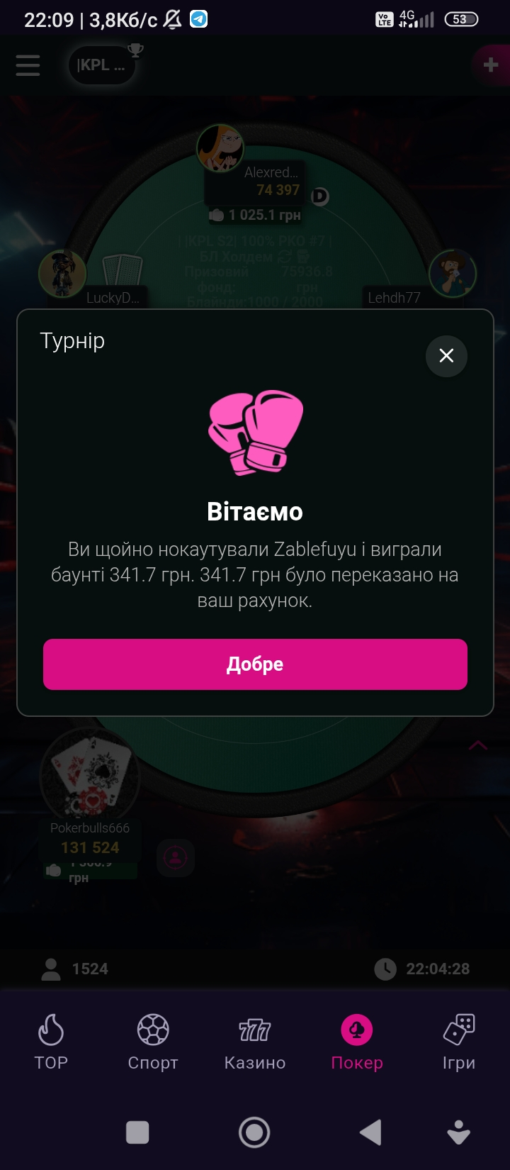 Дякую всім хто в той вечір був зі мною за столом,в також стрімеру,,Карасяці",що з його фріхи,я получив білет в такий гарний турік,як кажуть роки гри в покер приносять через певний час результати.Всіх обійняв,підняв, підкинув і спіймав
