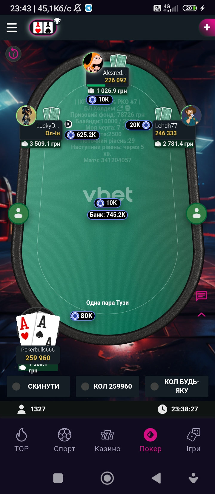 І так сьогодні грав на Вбеті,гра сподобалась,нерви не підводили,так як і відчуття,що я граю і хочу попасти в призи .Далі гра ішла по аналізу стола,хт...