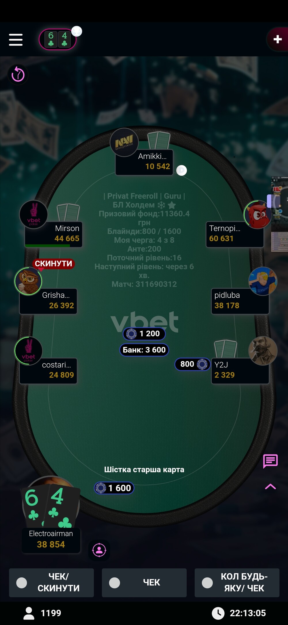 Схоже було і в мене. Фіналка, але 2 бали до заліку. Мій ол-ін з АА на префлопі прийняв суперник з КJ, і йому зайшло.