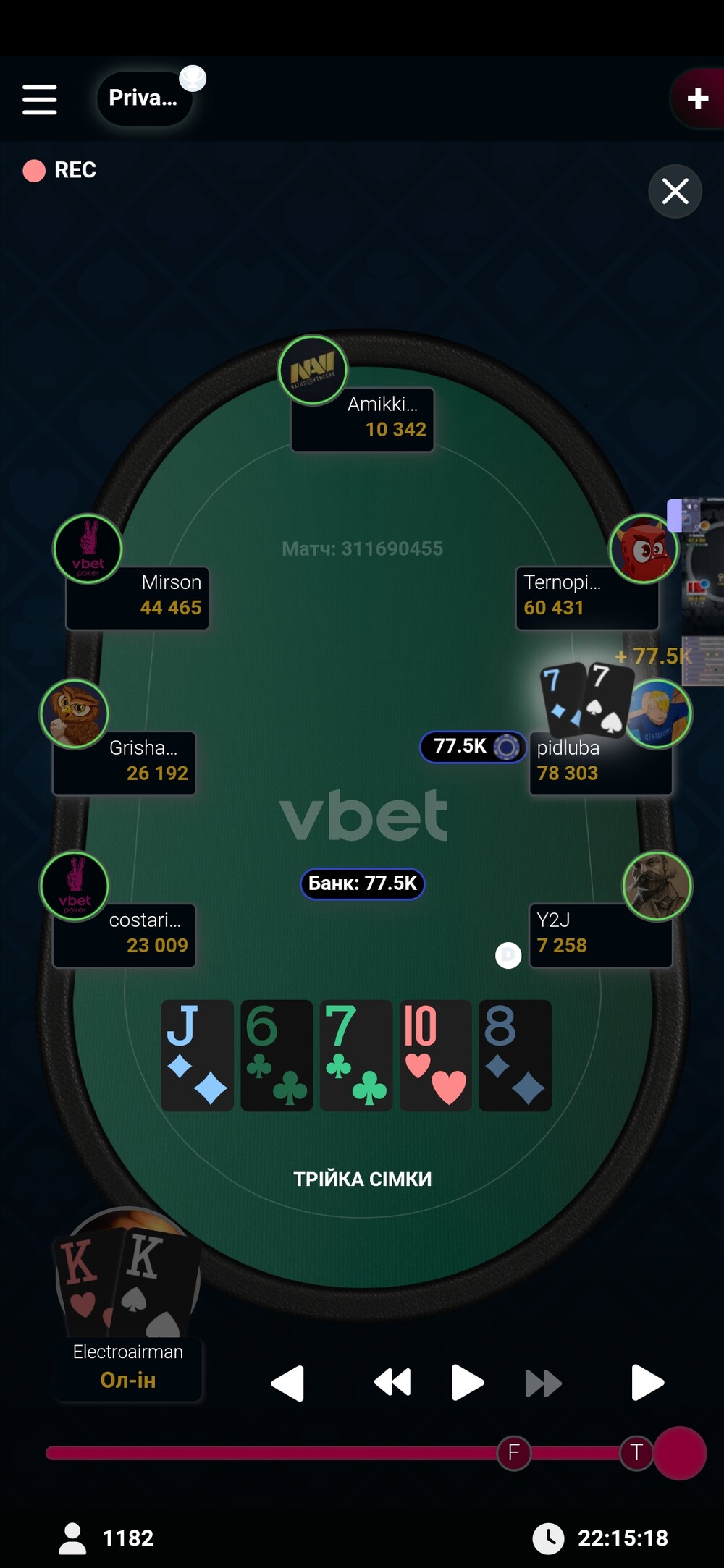 Та чого, як по мені нормальна гра з КК! Я б сказав що з 77 це погана гра у такому СПР префлоп , бо там або пушити треба , або пасувати! Бо будь який флоп без 7 додає одні проблеми !