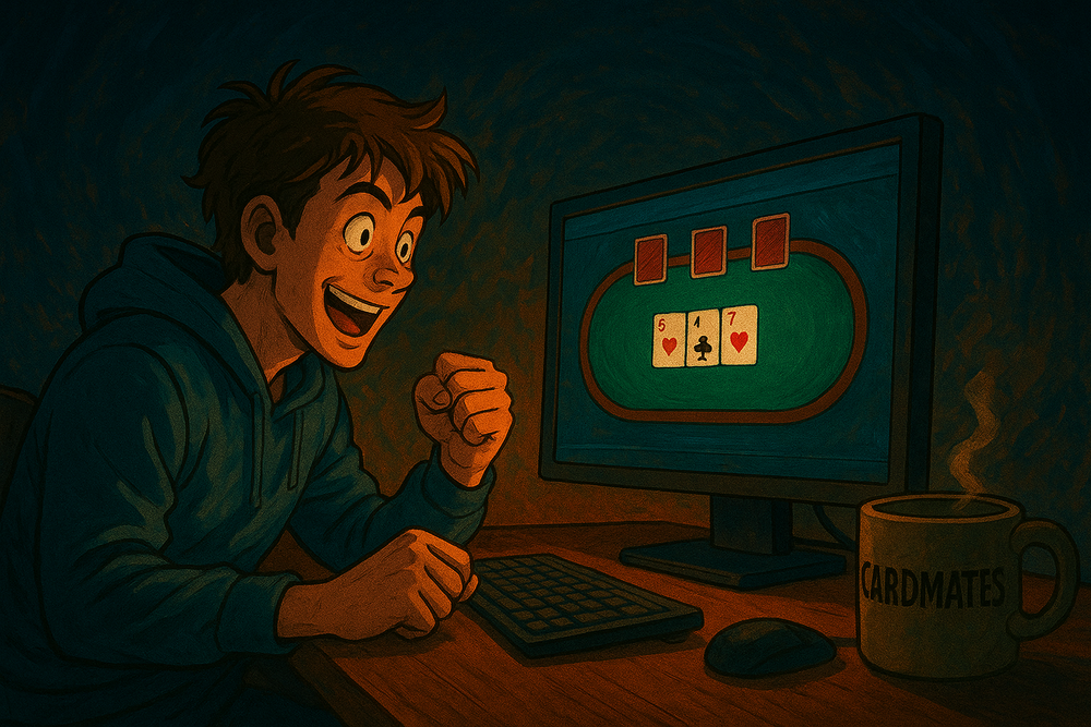 Однак і ця тактика у нього теж не спрацювала, бо мені того вечора сипало «як з рогу достатку». Спроби опонента раз за разом підловити мене на блефі зазнавали фіаско, розбиваючись об мої натси.