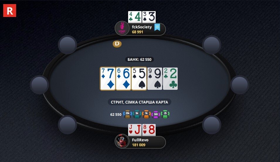 На рівері виходить бланкова карта по якій я отримую те, що й хотів - ставку. Залишилось лише зімітувати важкі роздуми та піти в "all-in". На що отримую миттєвий "call".