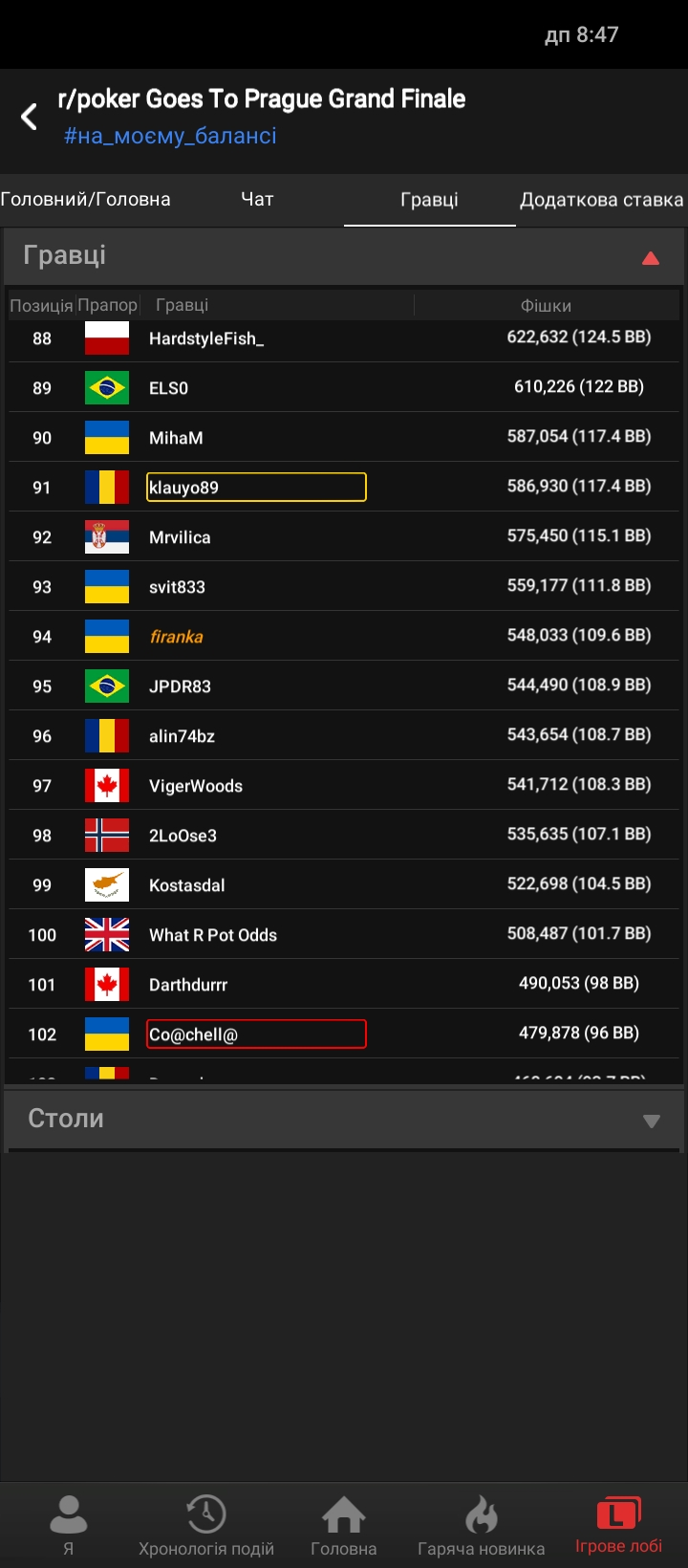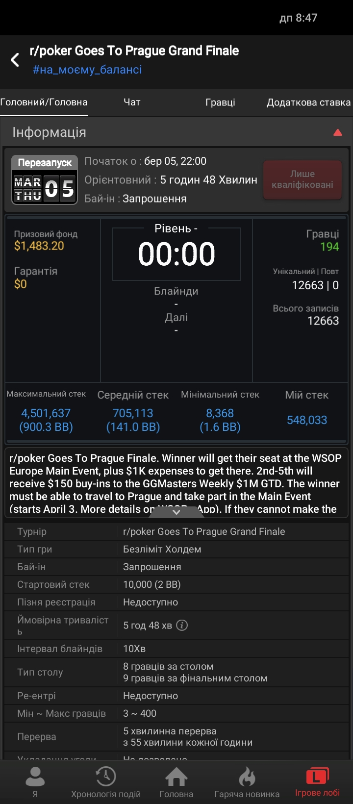 Але відібрався до фінальної частини, зігравши три фрірола, і посівши 94 місце, зі стеком 100ББ.