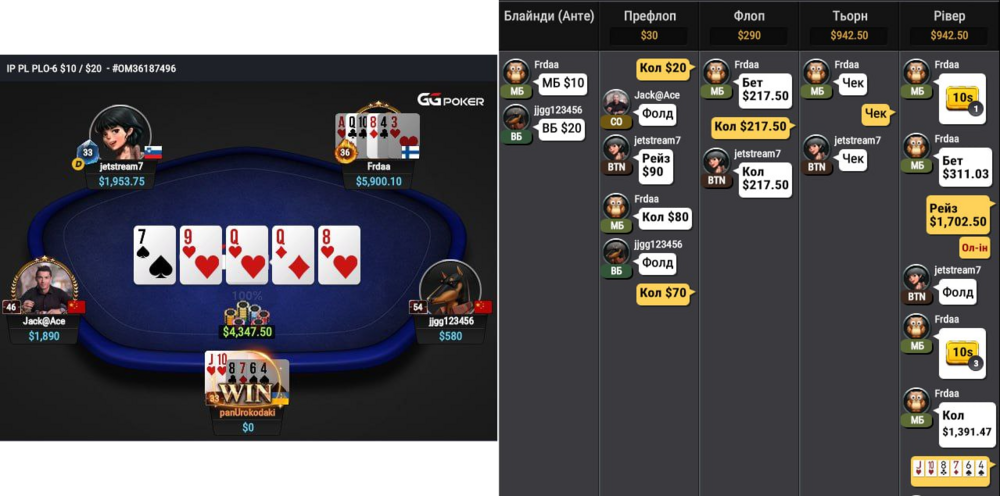 і загалом зіграв би починаючи з префлопу зовсім по-іншому, аби грав на своїх 50-100.