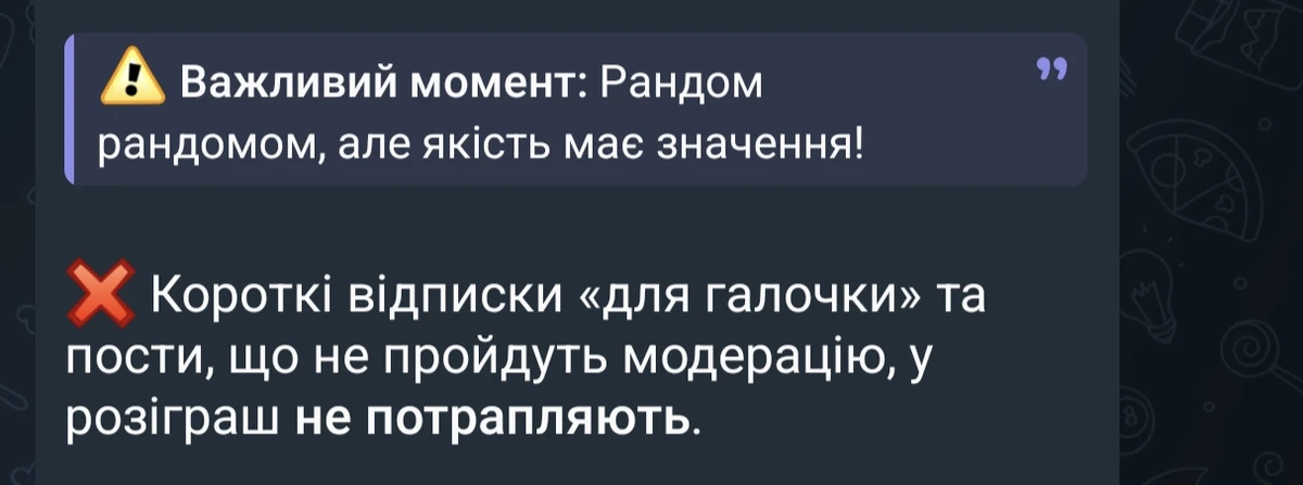 Я розцінюю цю ситуацію як порушення суспільного договору між платформою та користувачами. Потрапляння до списку жеребкування постів, що не відповідають заявленим умовам, - це помилка організаторів.